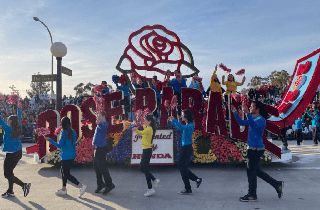 After I chugged some Starbucks, we made our way into town for the Rose Bowl Parade, which was quite the spectacle. What I really enjoyed were the guys marching up and down the street with their big signs and megaphones yelling about how we’re all going to hell or whatever was so important that they had to preach for such a long period of time. The floats and performers were almost as impressive as those stamina on those goons. My favorite part, however, was the little kids who walked behind the horses with shovels in case of an accident.